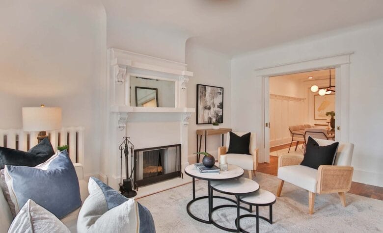 The south-facing aspect affords unimpeded views of the Alps. Measuring 42 square metres, with traditional Alpine woods, warm fireplaces, and natural-stone touches.